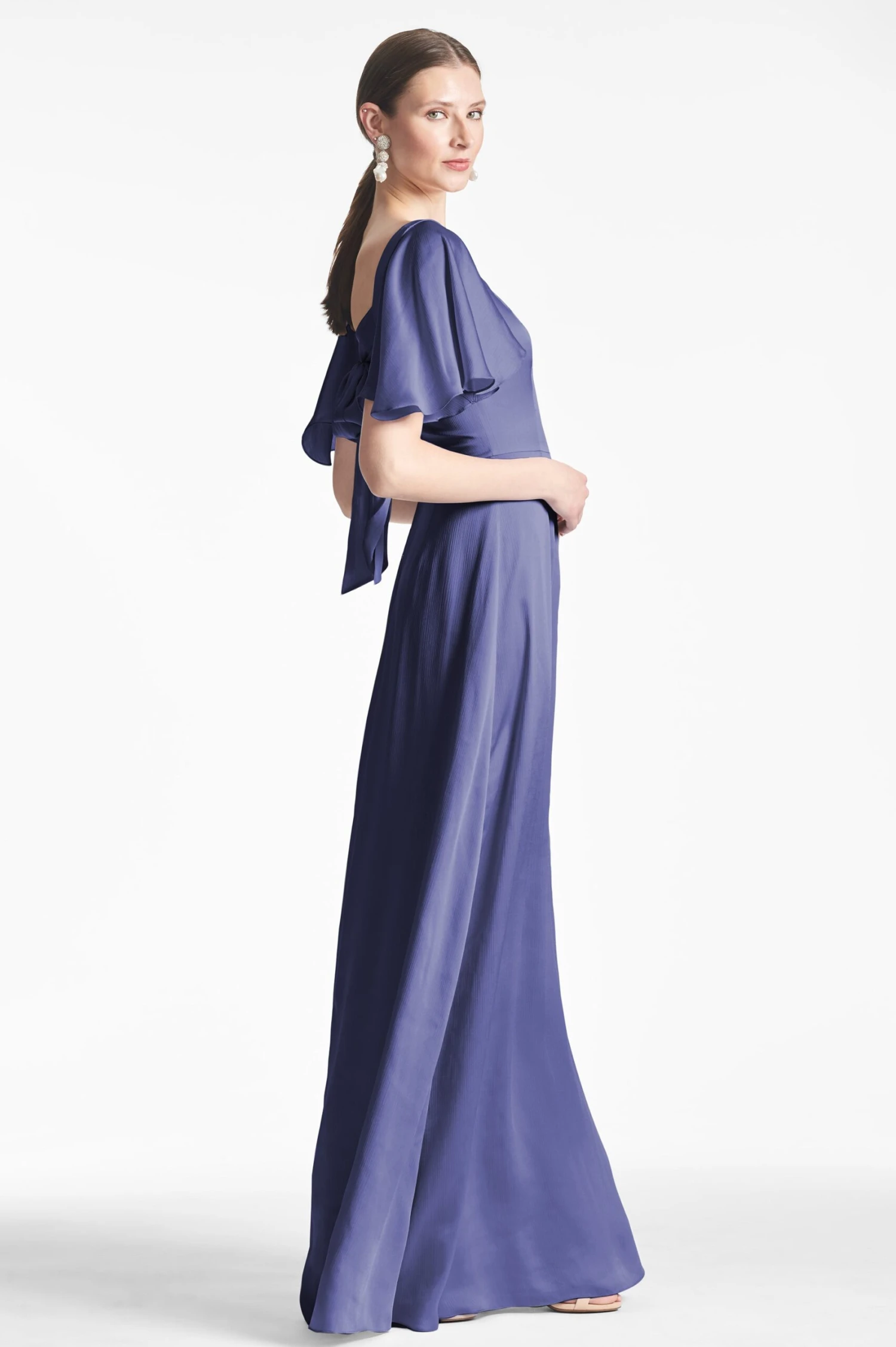 The Aurora Gown, part of our Essential Social collection, is the perfect choice for wedding guests and bridesmaids alike. The flattering silhouette and flutter sleeves offer a classic, timeless look.