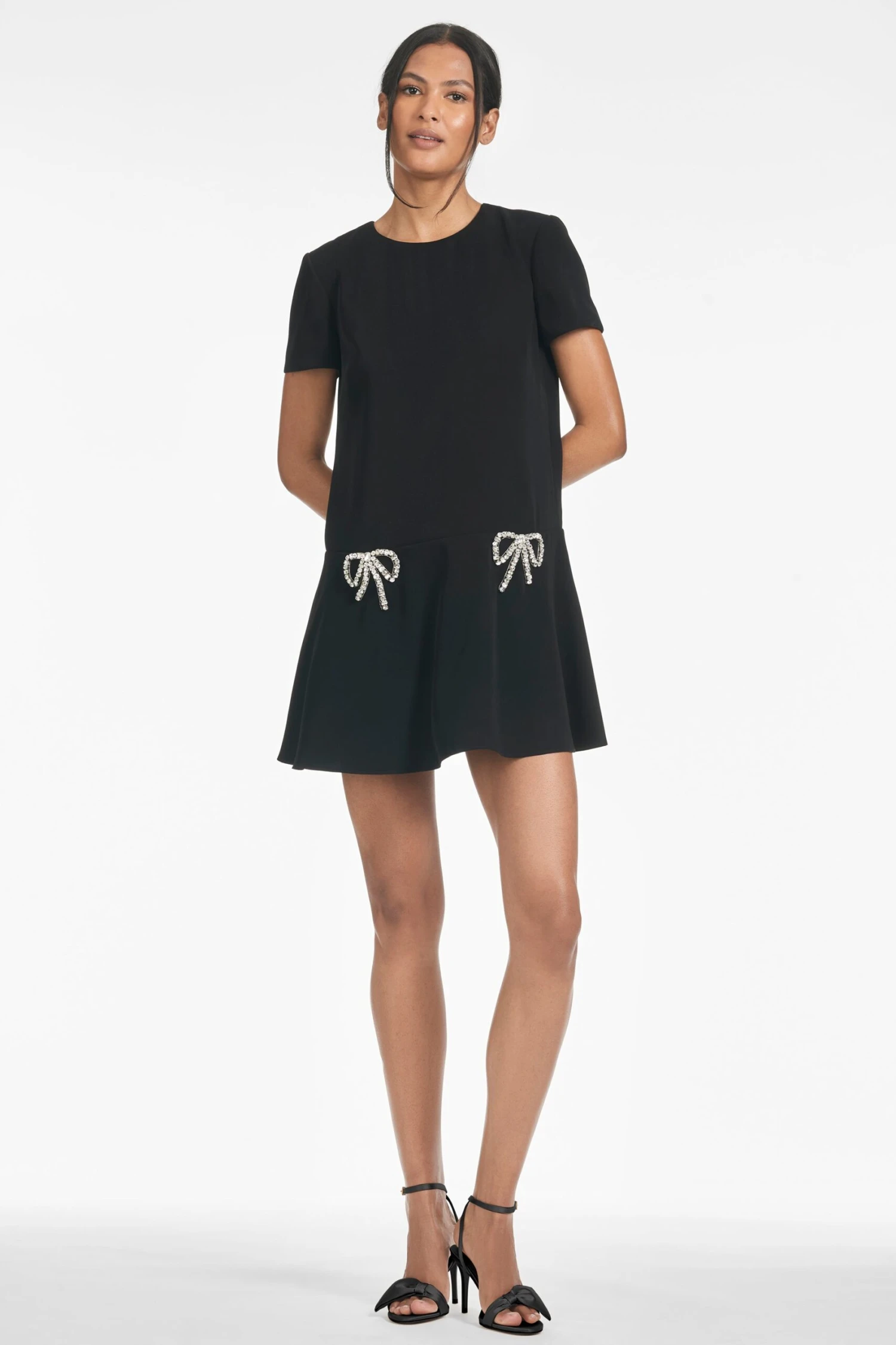 Elegance meets darling with the Bethany dress in luxe black stretch crepe. This LBD features two crystal bows that add just the right touch of sweetness. Oh, did we mention she has pockets? This is the forever piece you’ll reach for time and time again.