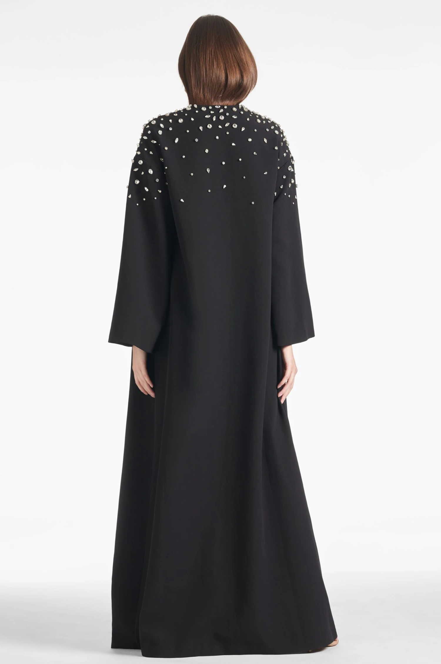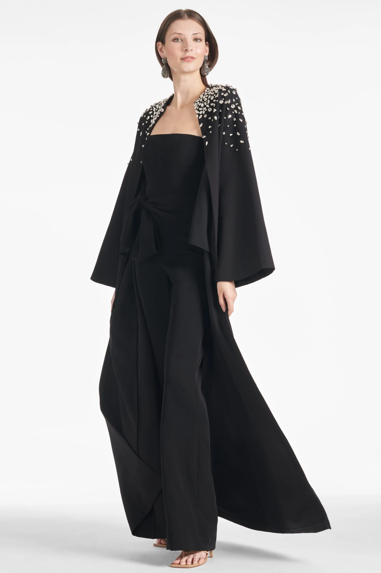 Crafted for a timeless look, the Calliope Coat is a grande addition to any wardrobe. The seasonless crepe fabric gives it a luxurious look with a relaxed, intentionally easy fit. This is not for the faint fashioned hearted, this is for all of our bold glamour girls! Hand placed crystals blanket the neckline and like sparkling stars in the night sky.