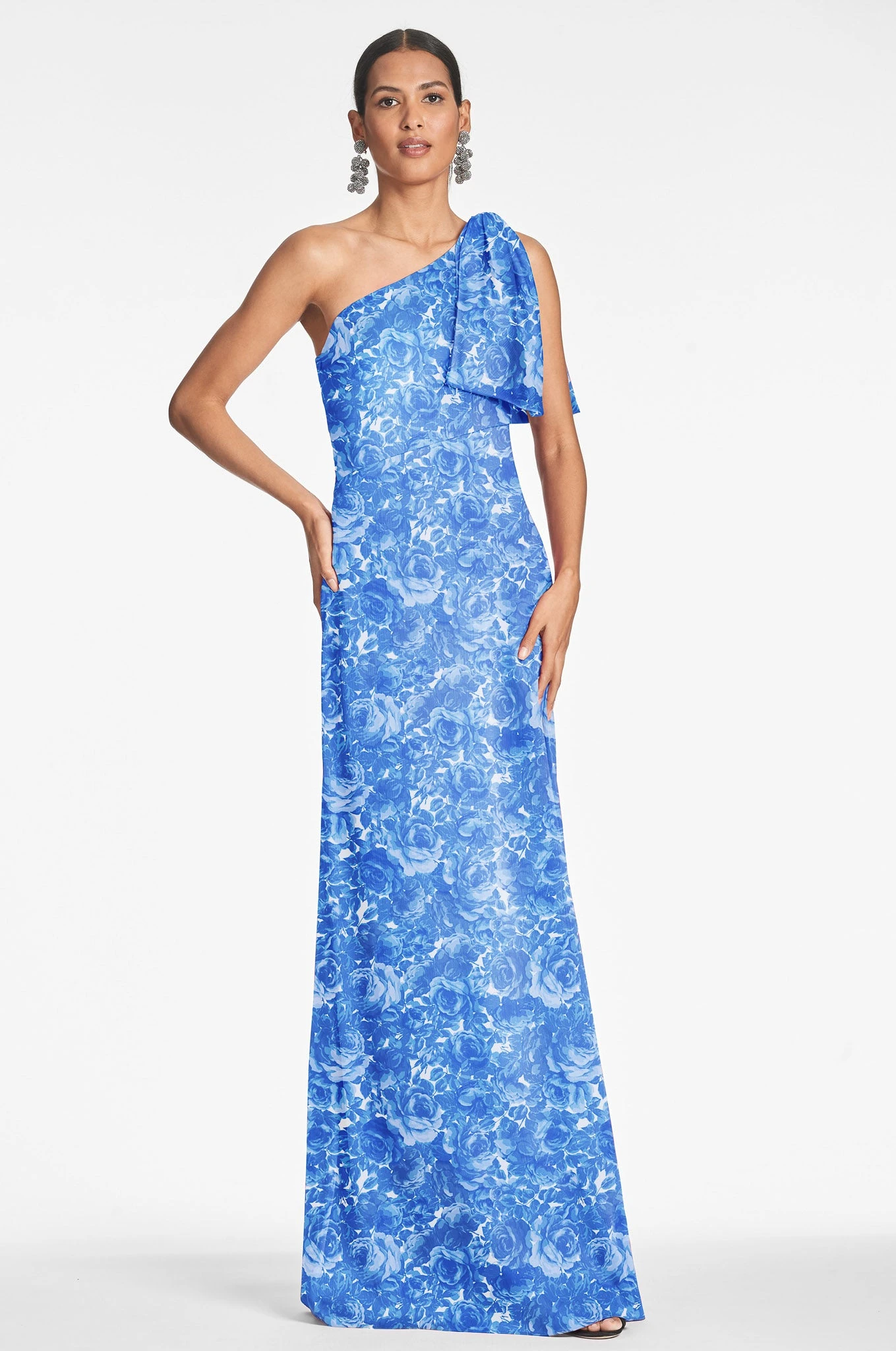 The Chelsea gown is an example of balance by design. A sleek sleeve of crinkle georgette is cut on the bias with an asymmetric seam at the waist, creating a column for curves. At the shoulder sits a hand-tucked, stitched-on collapsed bow. We design all of our Essential Social dresses with the intention that they can be enjoyed again and again. After all, a beautiful dress should be worn often and well.