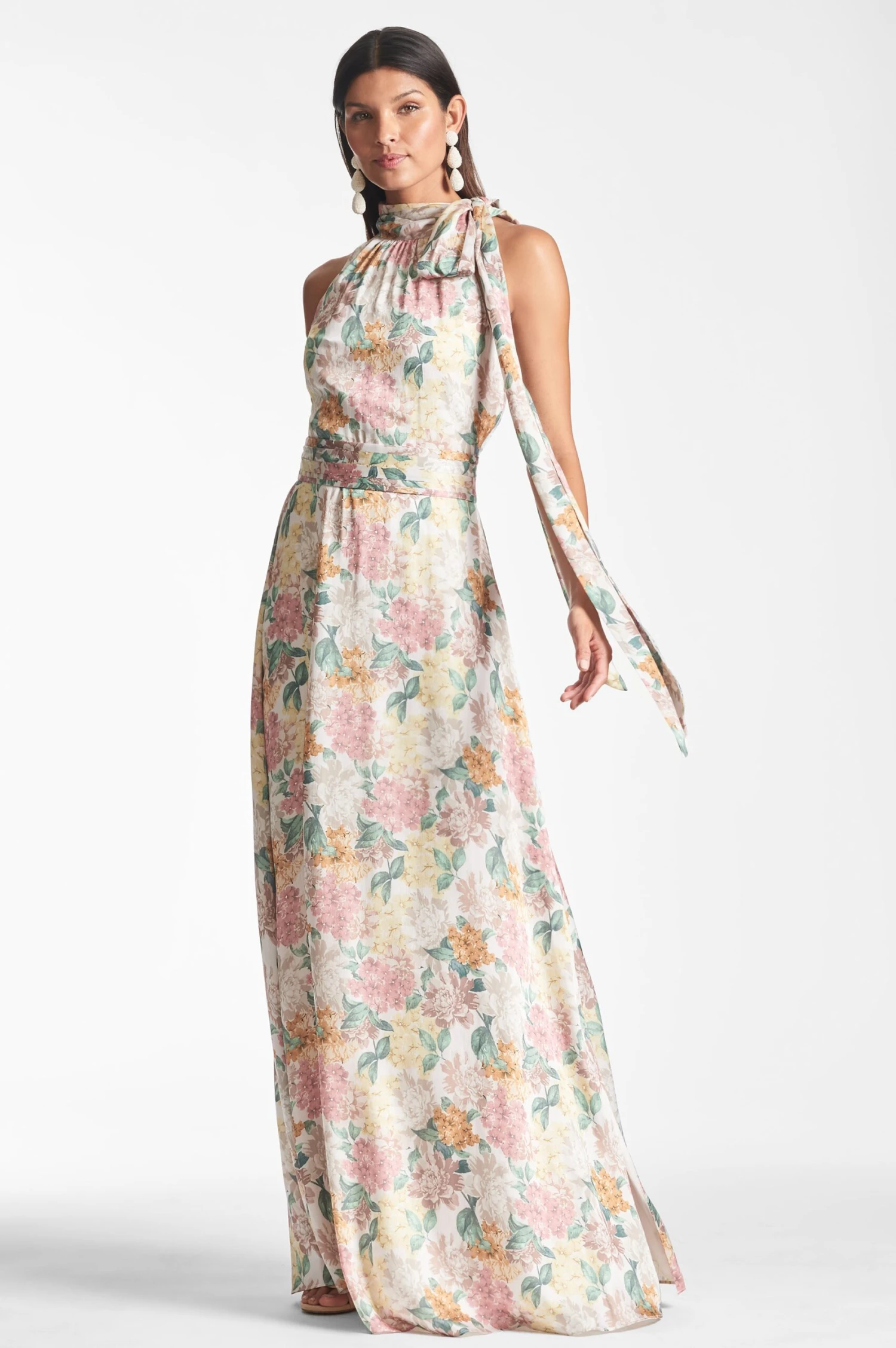 Kayla is an elegant maxi dress with a self-tie at the neckline, the dress speaks to a simple yet romantic elegance. The stitched-on pleated waistband hits at the true waist for the most flattering shape. We design all of our bridesmaid’s dresses with the intention that they can be enjoyed again, we think a beautiful dress should be worn often and well.