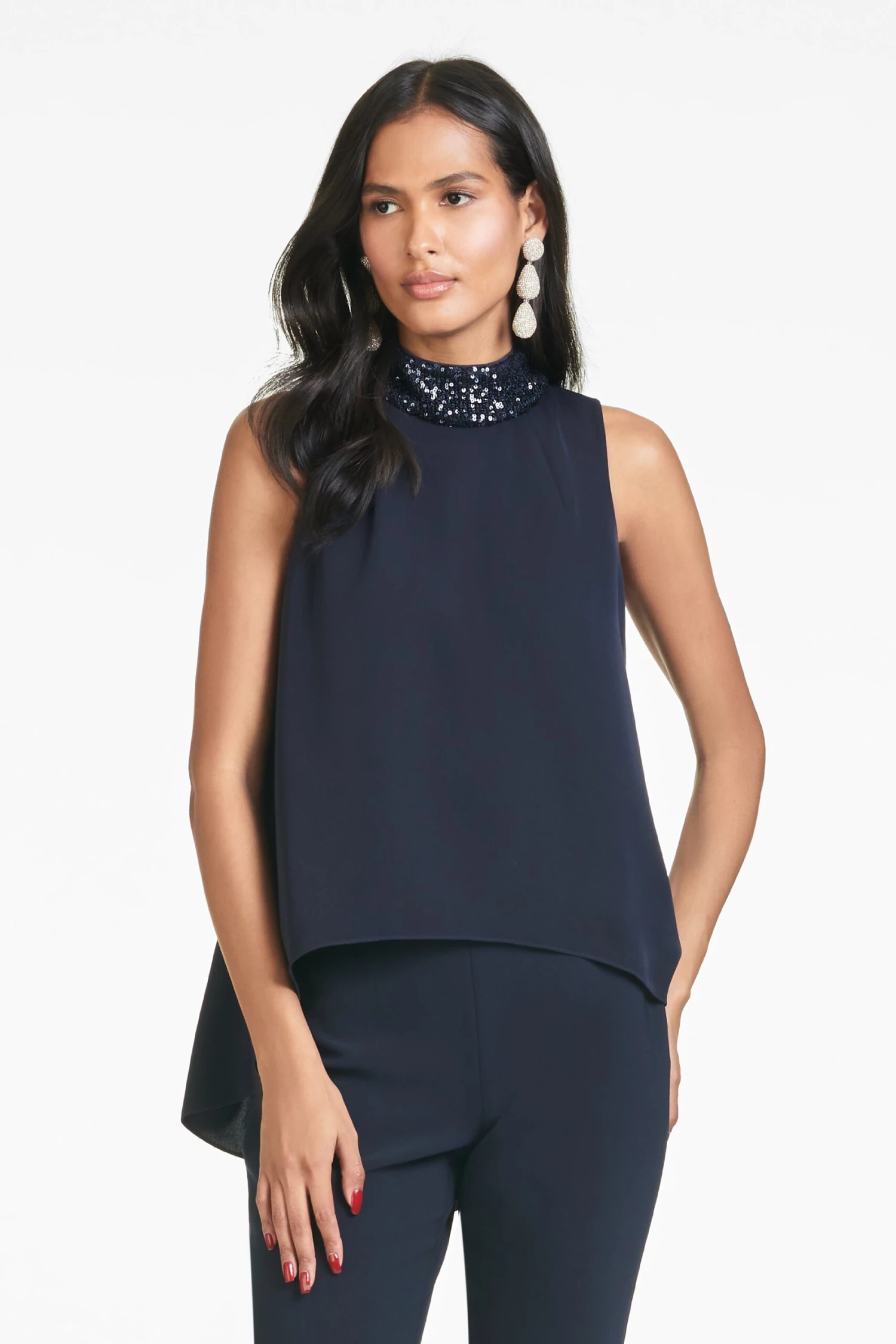 The Keaton tops and tails style is reimagined with tonal sequins at the neckline.