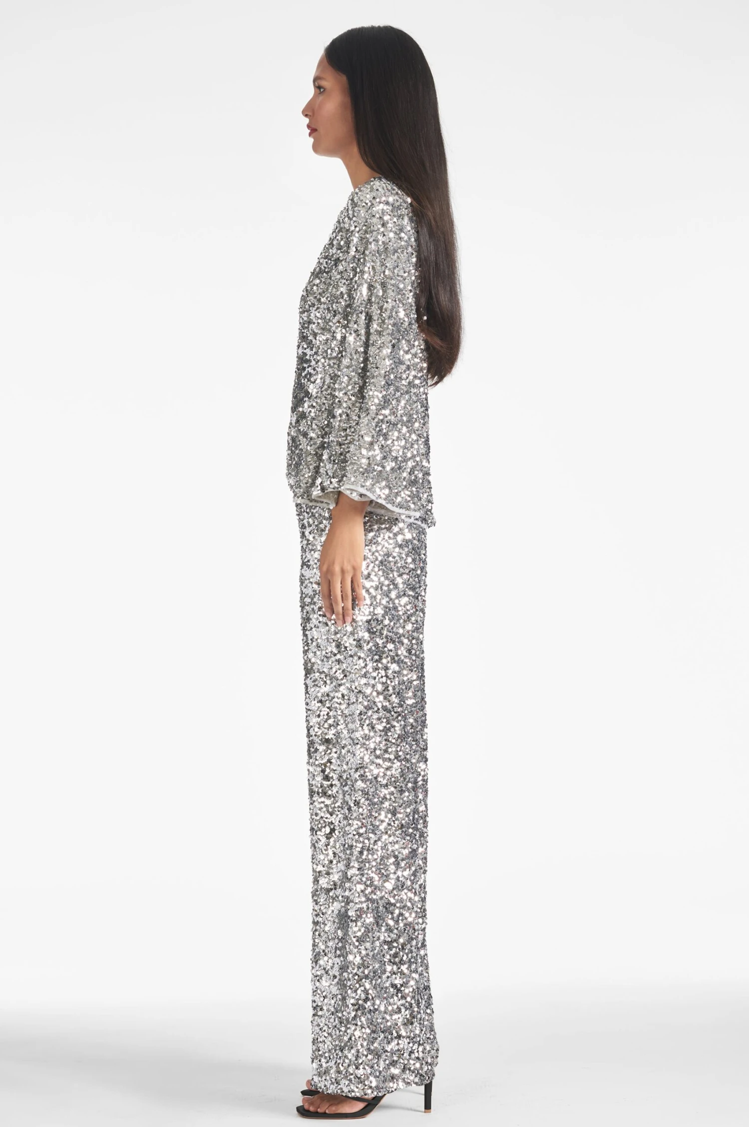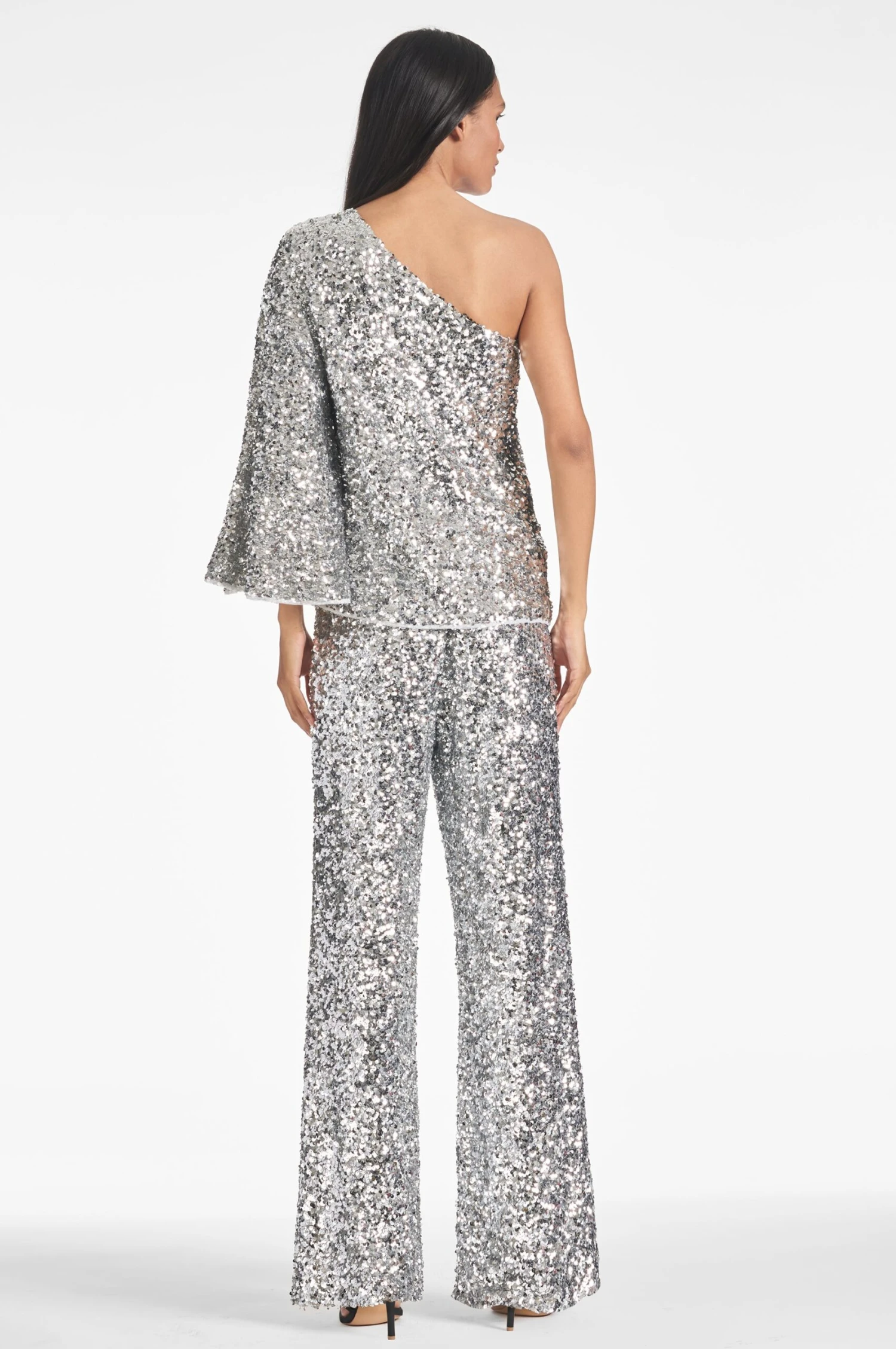 The Morgan Top is a stylish evening wear piece that will be sure to impress at any special occasion. This one shoulder top features a modern silhouette that is sure to turn heads and easily elevate your look. Fashion-forward and elegant, this stylish party top is sure to make you the center of attention sparkling in silver sequins.