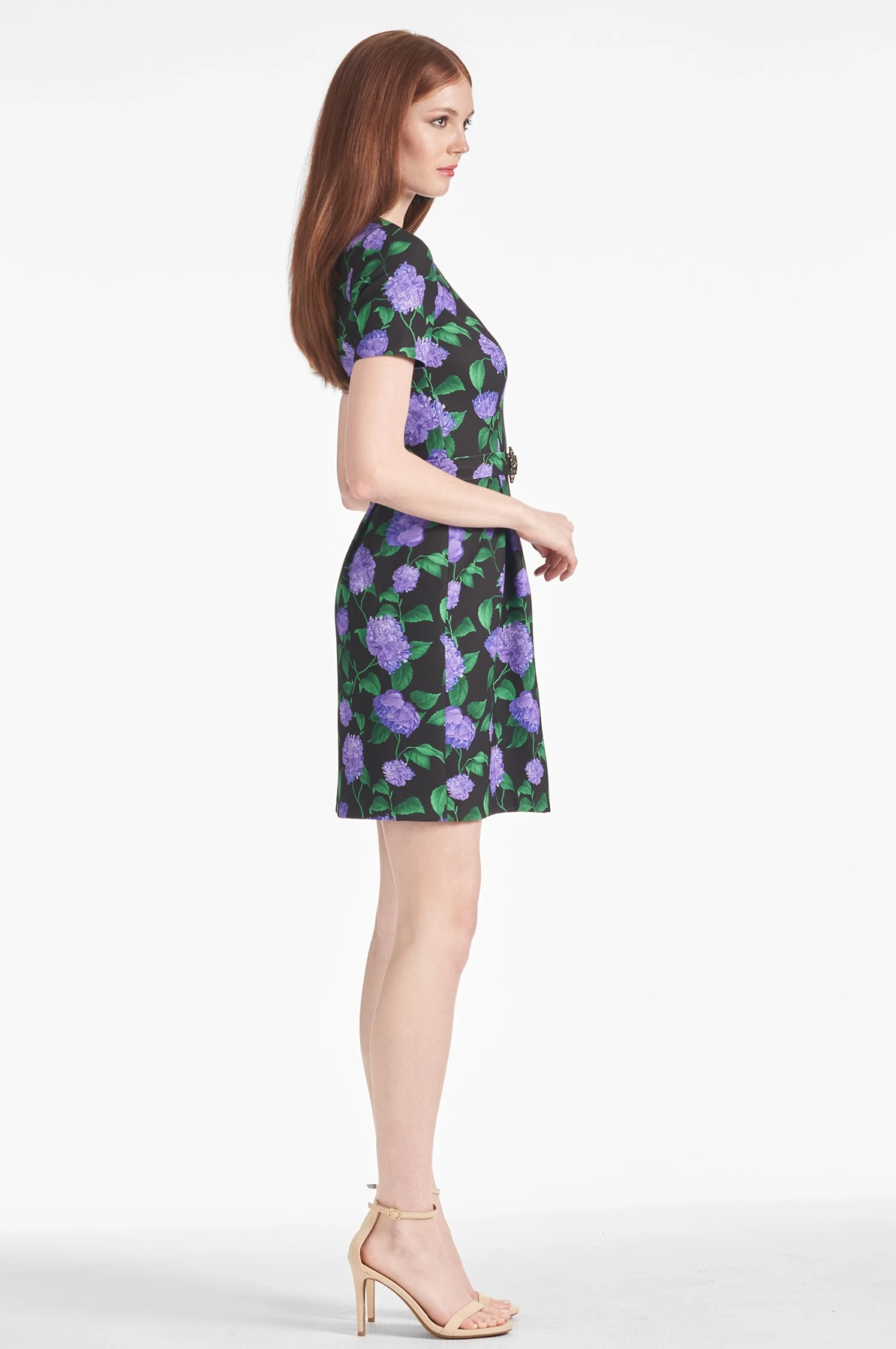 The Rue Dress is perfect for any season. Crafted from crepe in our violet garden print, this mini dress has short sleeves and a belted waist. It’s the perfect cute look for work, dinner, or a party, and can be styled in many different ways for any season.