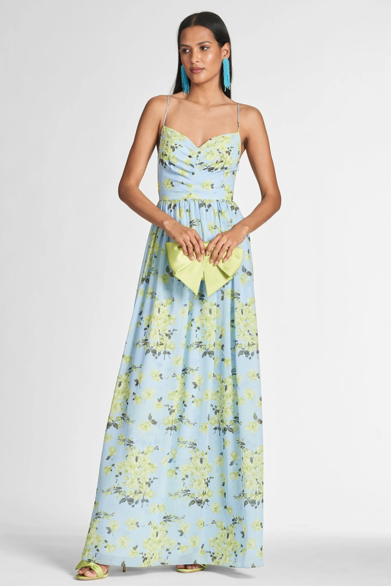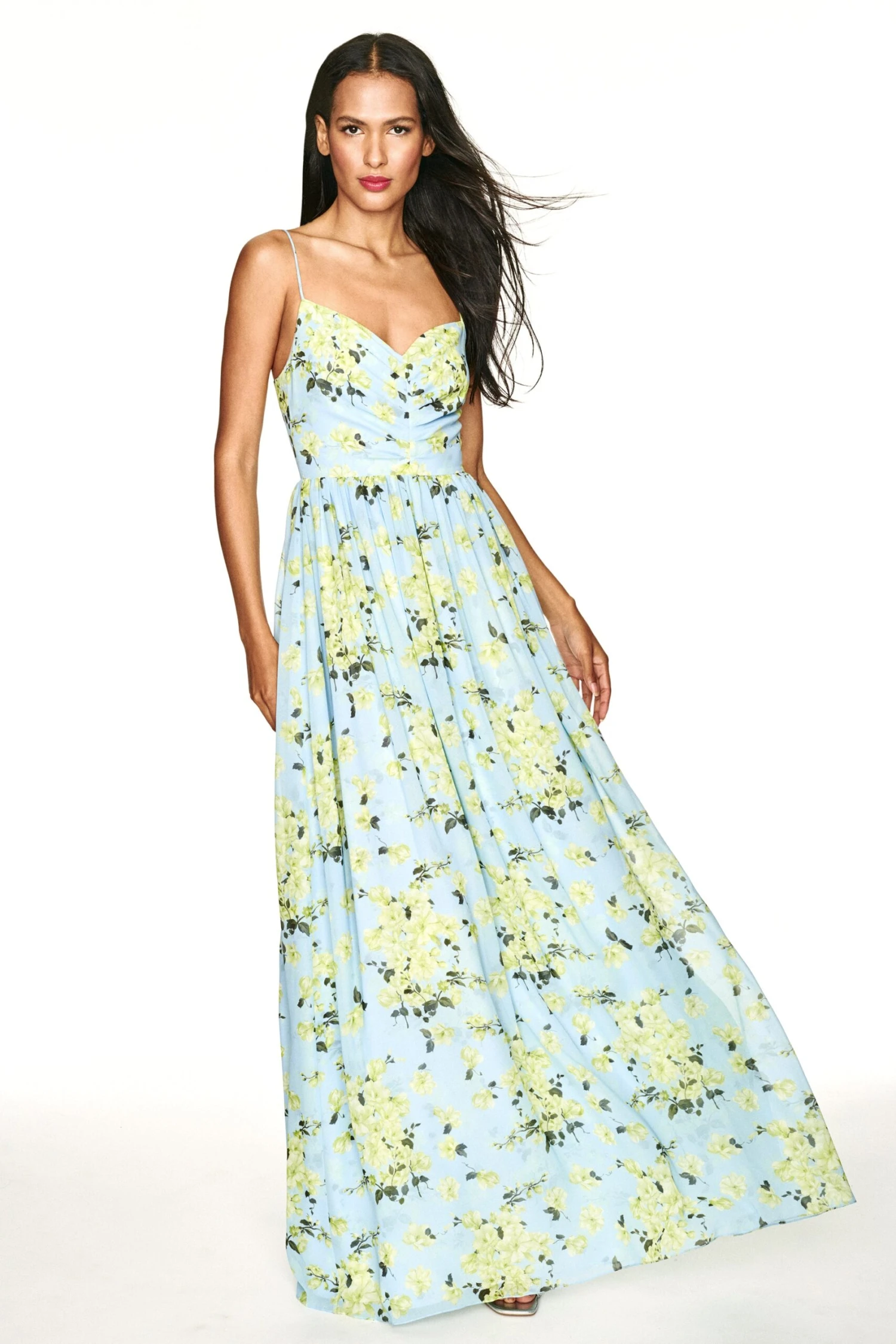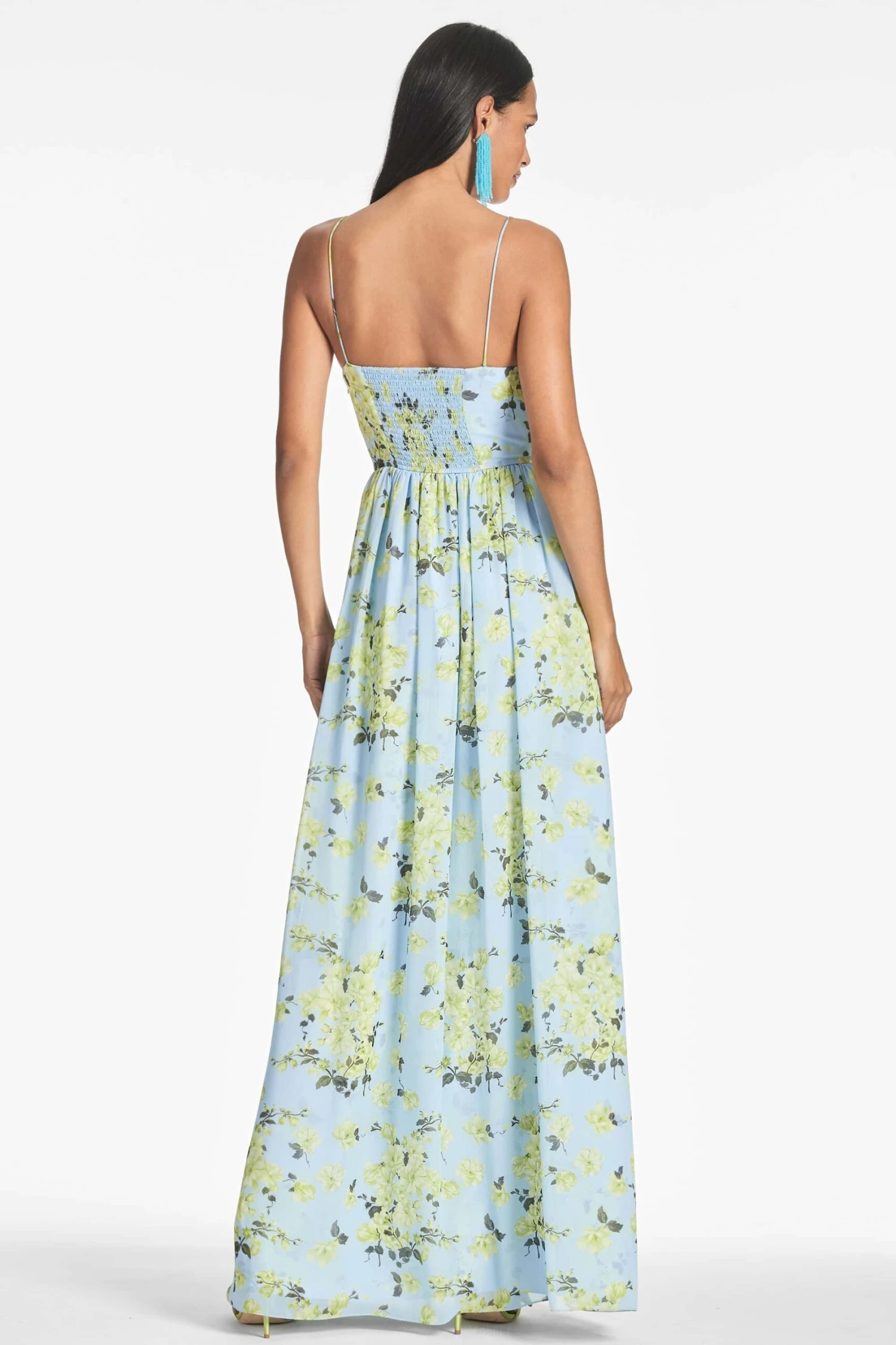 Sienna is a printed chiffon dream. She’s a classic maxi silhouette with a subtle V neckline and smocking at the back. Look no further for your perfect Spring and Summer event dress.