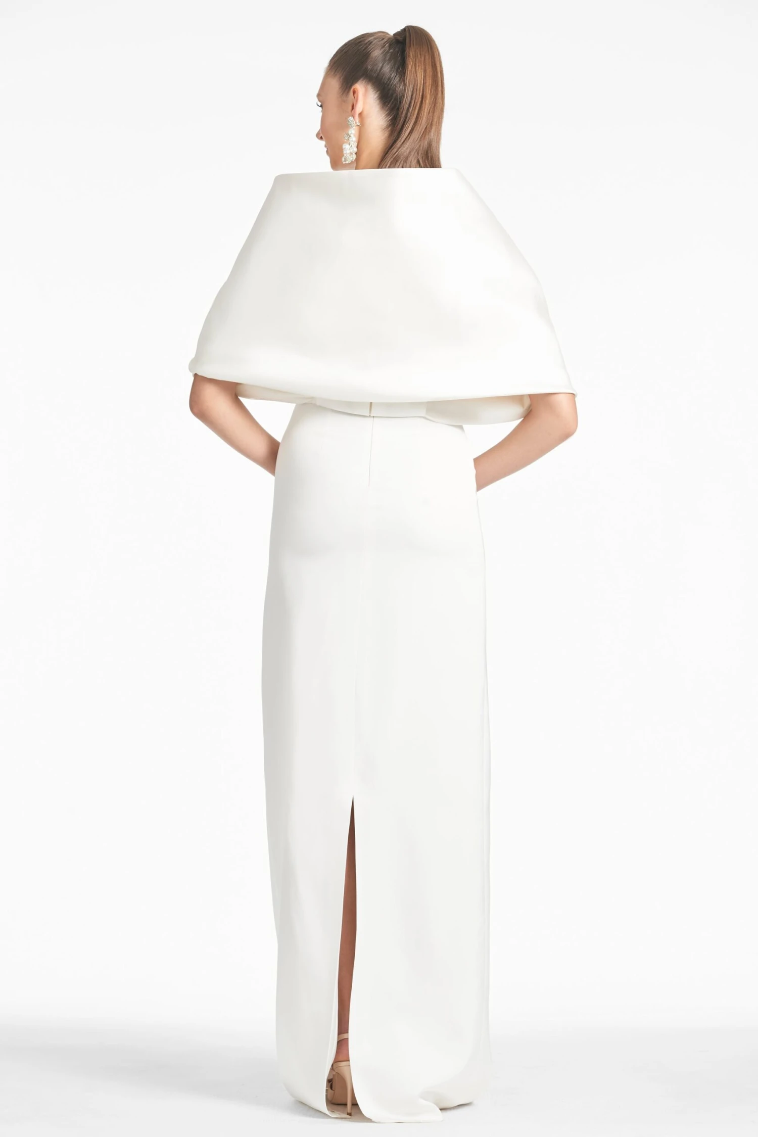 Introducing our Hug Shawl in ivory. Whether you’re looking for more modesty or for an added element to your look, this is the hero piece of the season. She’s made of rich Mikado and fits around you like a warm hug.